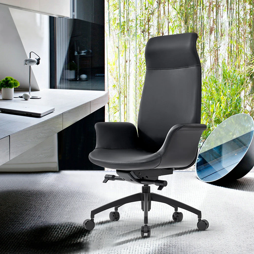 The ARKIN high back office chair with Black PU Leather is a stylish and elegant Office Chair. Perfect for any office or workspace. The high back and the adjustable height make it perfect for ergonomic support and comfort, while the PU Leather upholstery is both stylish and durable. The matt black legs complete the look of this modern office chair providing a stable and sturdy base.