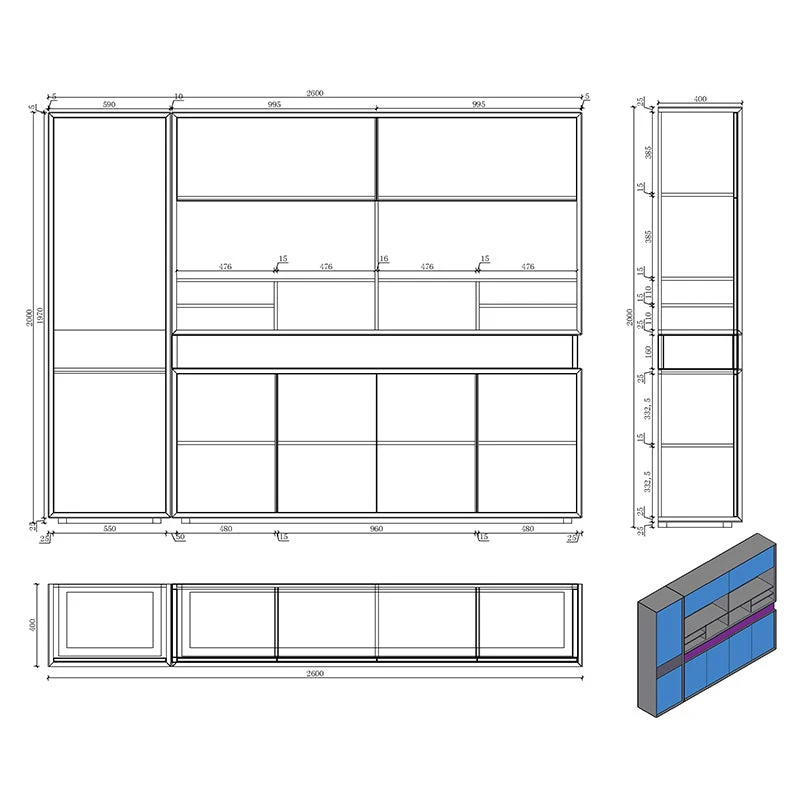 - 10 shelves 1 x(55Wx34.4×1.5); 1 x (95.6Wx34x1.5); 2x (96.2×34.4×1.5); 2x(96.2×34.4×2.5) 2x(47.3×34.4×1.5); 2x(47.8x34x1.5)