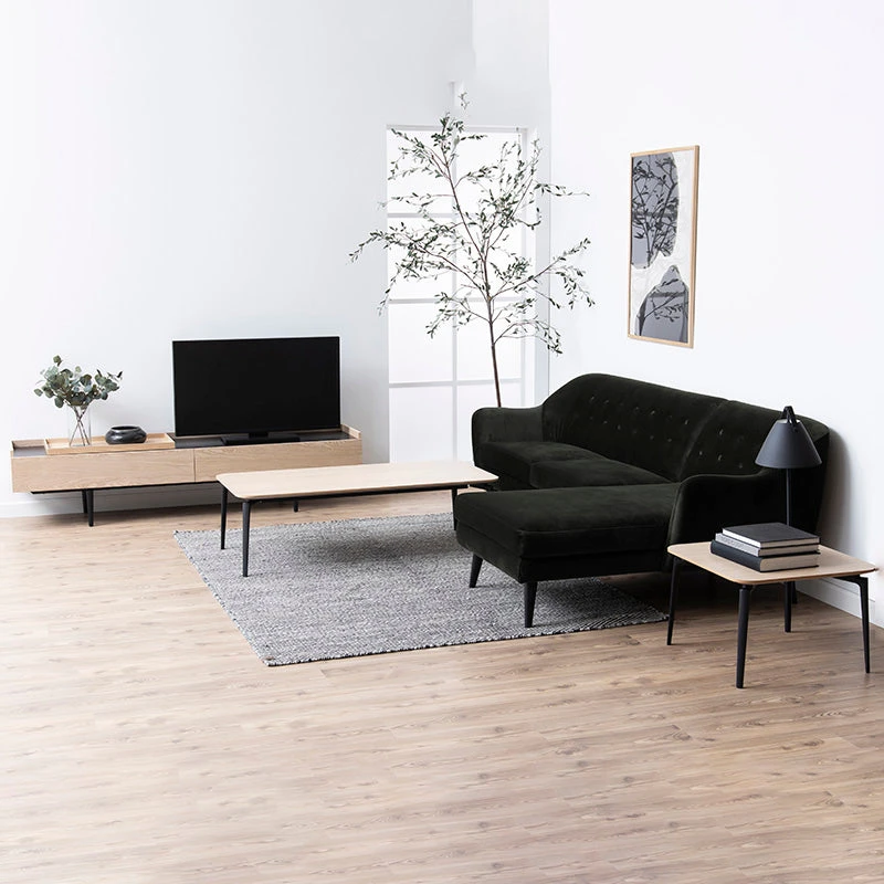 The Entertainment TV Unit from the BROGAN range has a modern Scandinavian design that is elegant and sleek. Behind the two beautiful oak doors lies plenty of storage space. An absolute eye-catcher for the living area.