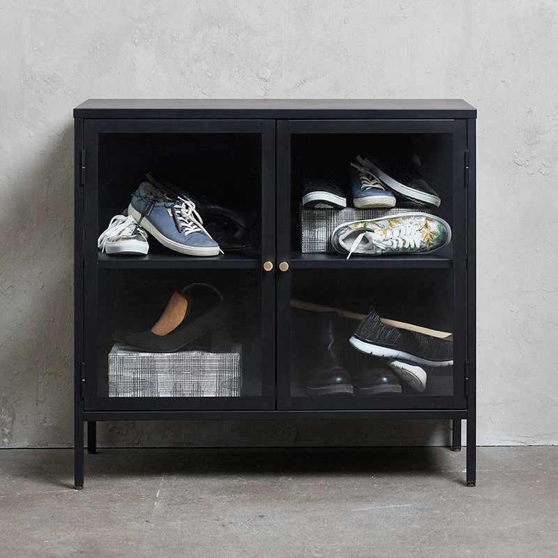 The CARMEL Black Sideboard is a modern and minimalistic piece that provides all the storage needed without sacrificing style. Crafted with quality in mind, this sideboard is both sturdy and durable to make sure it will last for years to come. With two doors and tempered glass, golden handles and adjustable shelves, the Carmel Cabinet will be the focal point of any room. Truly perfect for any room in your home!