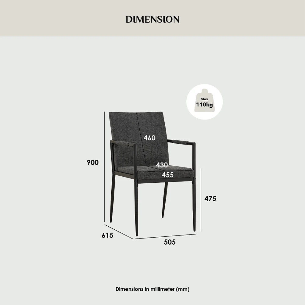 The FERMA dining chair with arms exemplifies simplicity with its refined and elegant design that prioritizes both function and form. the ergonomic backrest and wide seat enhance comfort while its sturdy construction ensures durability. This chair is the perfect addition to bring charm and a touch of sophistication to your dining interior.