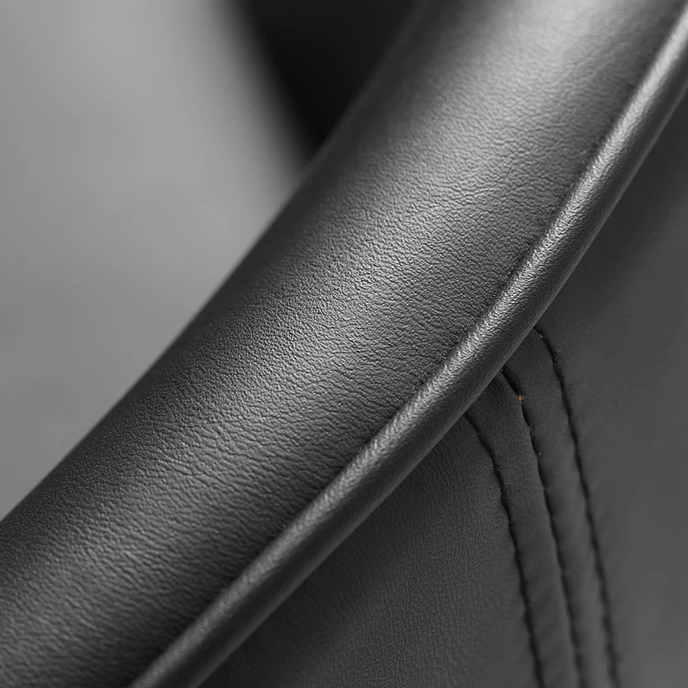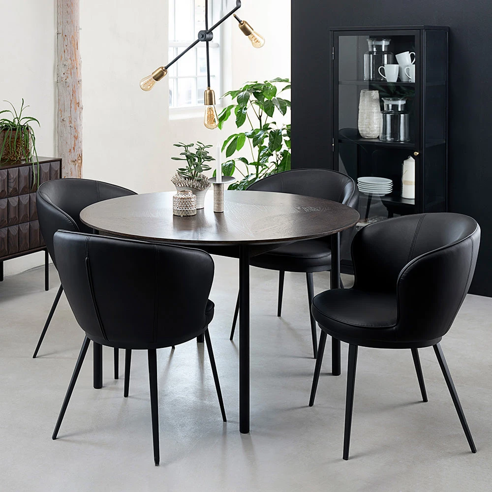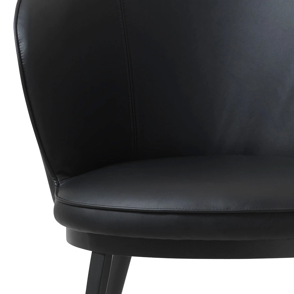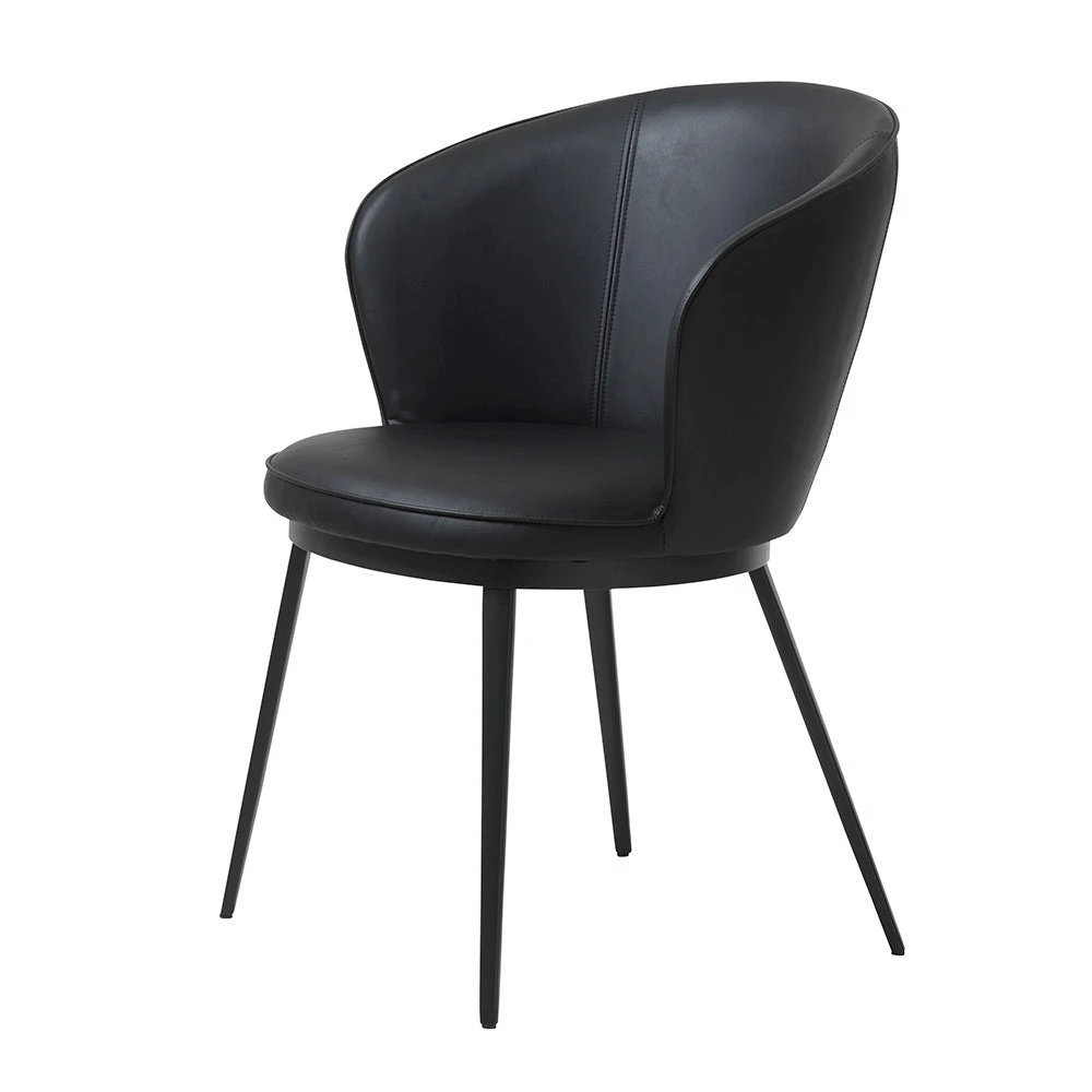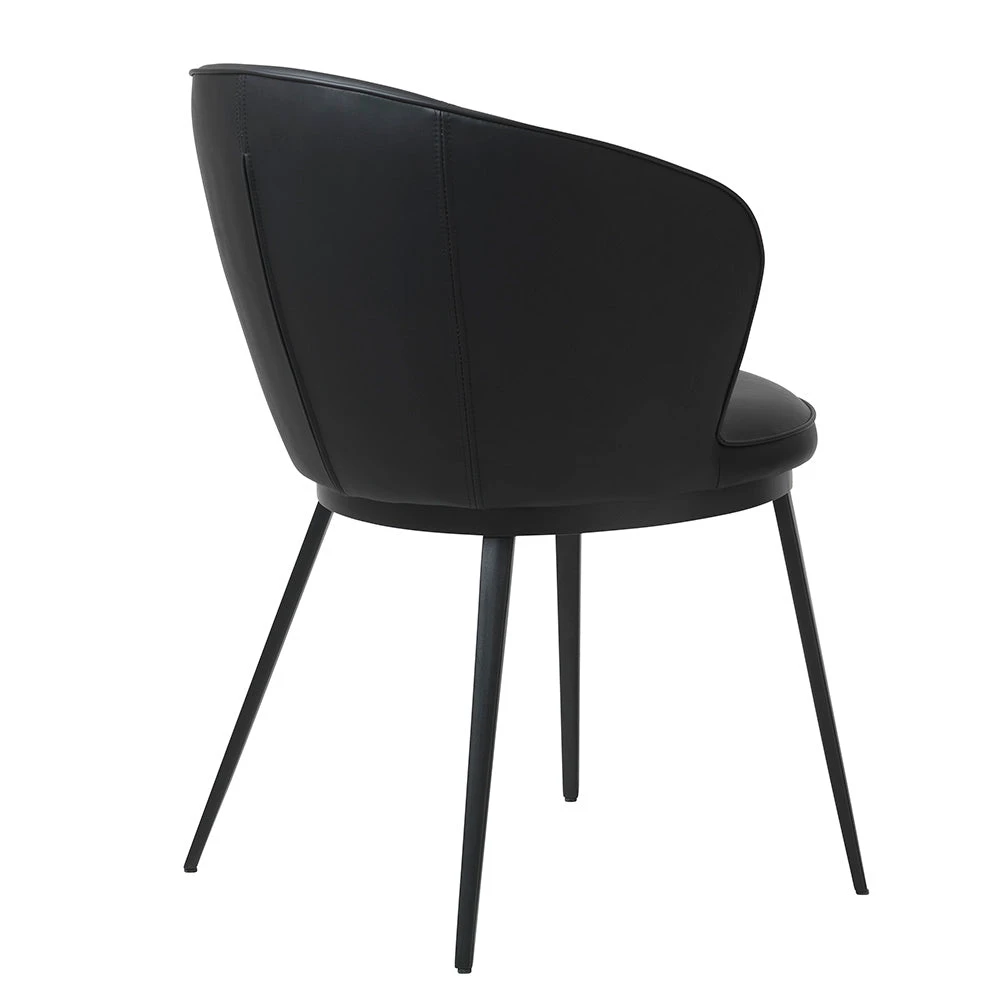 The GAIN Dining Chair, with its generously padded interior and beautifully flowing lines, offers timeless elegance and ultimate comfort. Crafted with precision, its silhouette is upholstered in elegant black PU leather, making it a stylish and cozy addition to any dining setting.