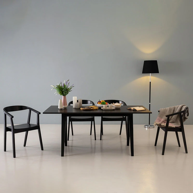The GRETA features a curved backrest and slanted legs crafted from Malaysian Oak and veneer, embodying a minimalistic design that exudes elegance. Ideal for any room in the house as it blends seamlessly with various décor styles.