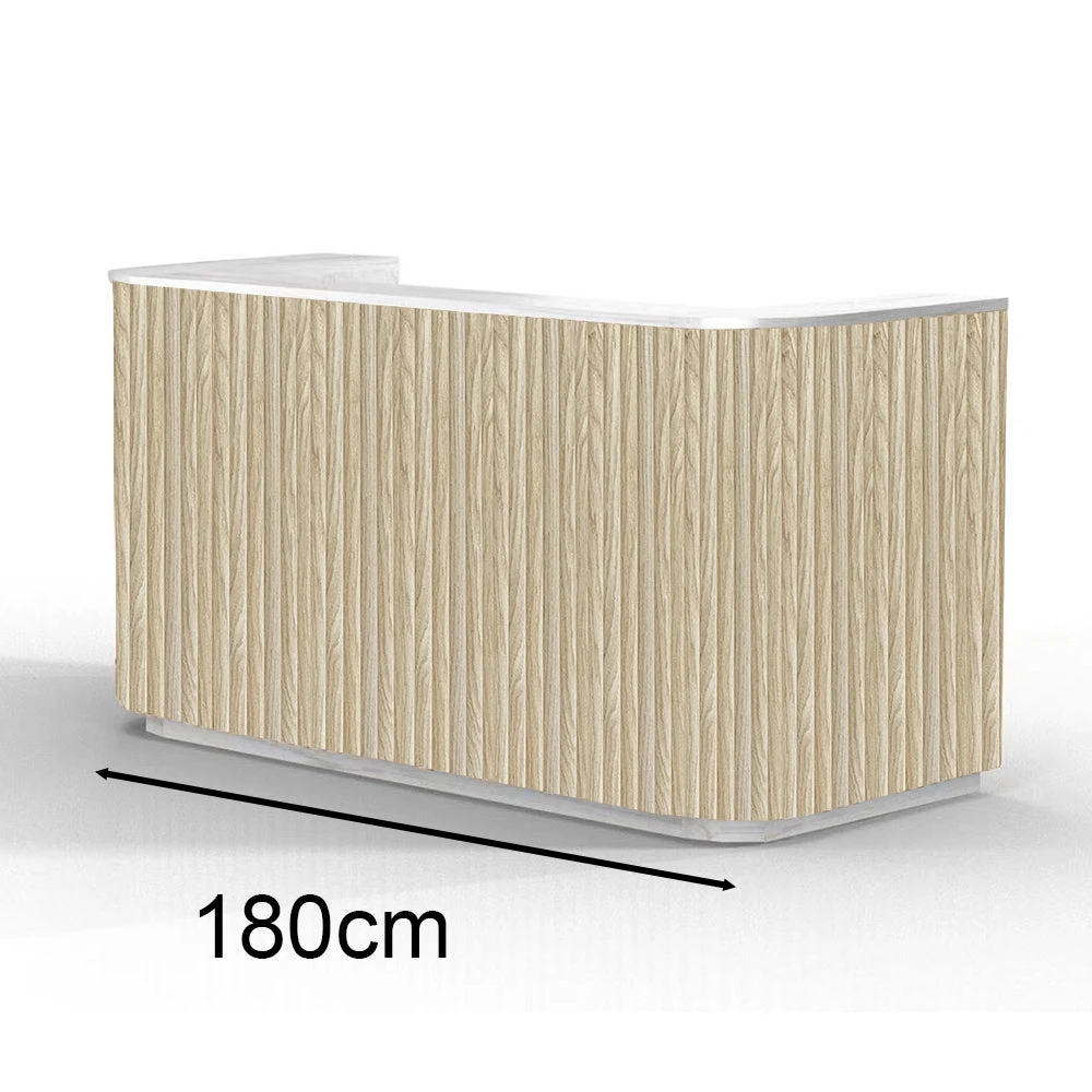 Introducing our new exclusive Halo 1.8m reception desk, a harmonious blend of natural elegance and modern functionality.