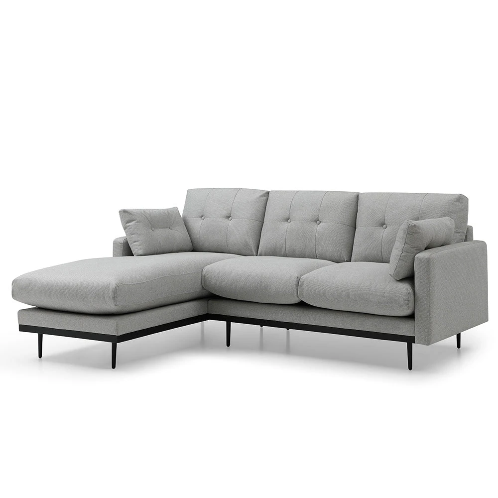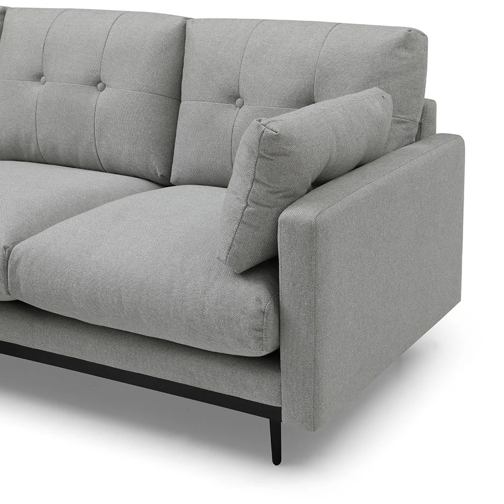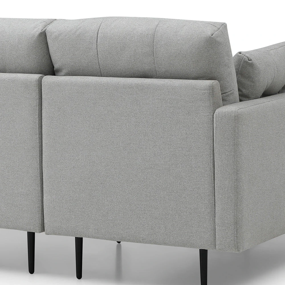 The HAVANA 3 Seater Sofa with a Chaise captivates with its lightness and versatile dimensions. The carefully designed feel-good concept ensures tremendous flexibility. Uncompromising in sophistication and elegance, the Light Grey fabric enhances both the aesthetic appeal and seating comfort. The addition of metal legs contributes to the sturdiness of the sofa, making it a perfect fit for any Lounge Corner Sofa room.