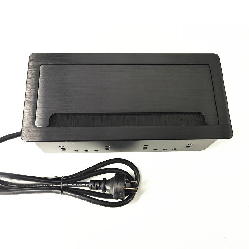 The easy Plug & Play box features power, USB-A, USB-C, Data and HDMI all in a strong sturdy brushed aluminum finish conduit with a soft closing lid.