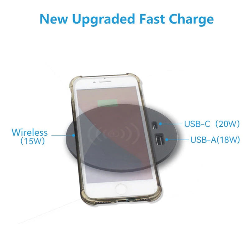 This simple plug and play In Desk Wireless Charging and USB dock device provides easy access to USB (A & C) and cable free charging.