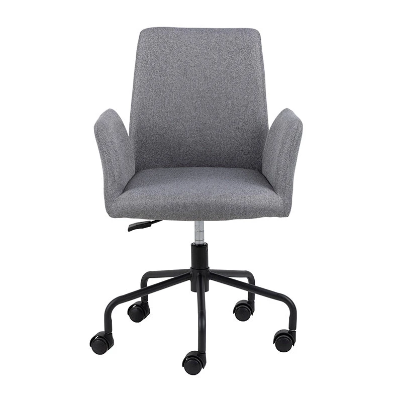 The ISLA Office Chair has an elegant and sculptural design that is perfect for any office or home. This comfortable upholstered chair has a beautiful light grey fabric with a matt black base. It has a high back and arms as well as a padded seat, for added support and comfort.