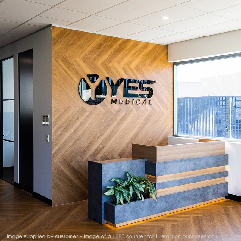 The KERAN Reception Desk is the latest addition to this beautiful range. Including LED lights this reception is a statement of elegance to suit today’s modern offices.