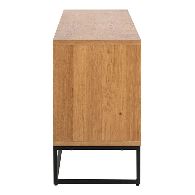 The LANEYA Sideboard has a rustic look with a brushed wild oak finish, plenty of storage with adjustable shelves, door & drawers with push open function and adjustable feet.