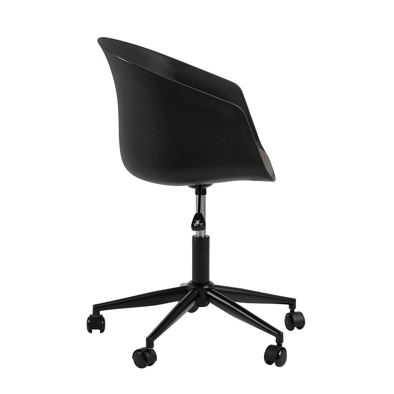 The LIDAN Office Chair has an elegant and sculptural design that is perfect for any office or home. This comfortable upholstered chair is black with a matt black base with a padded seat of grey fabric for added support and comfort. Has Gas lift, Multidirectional wheels with soft brake castors & swivel function It has a padded seat of grey fabric for added support and comfort.