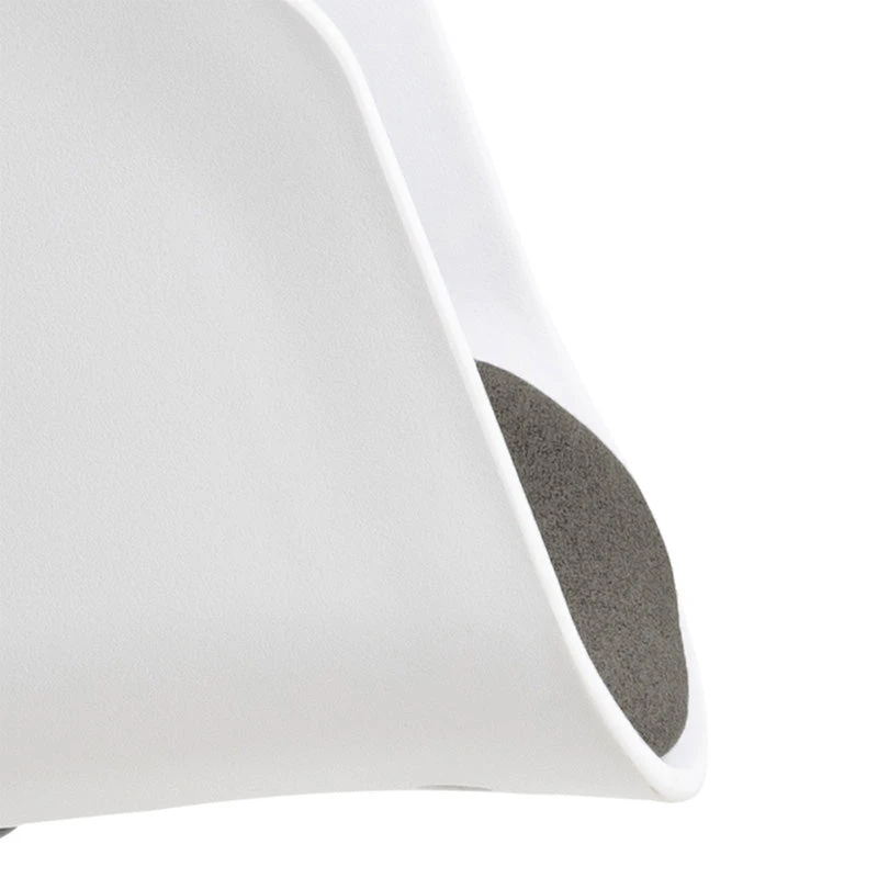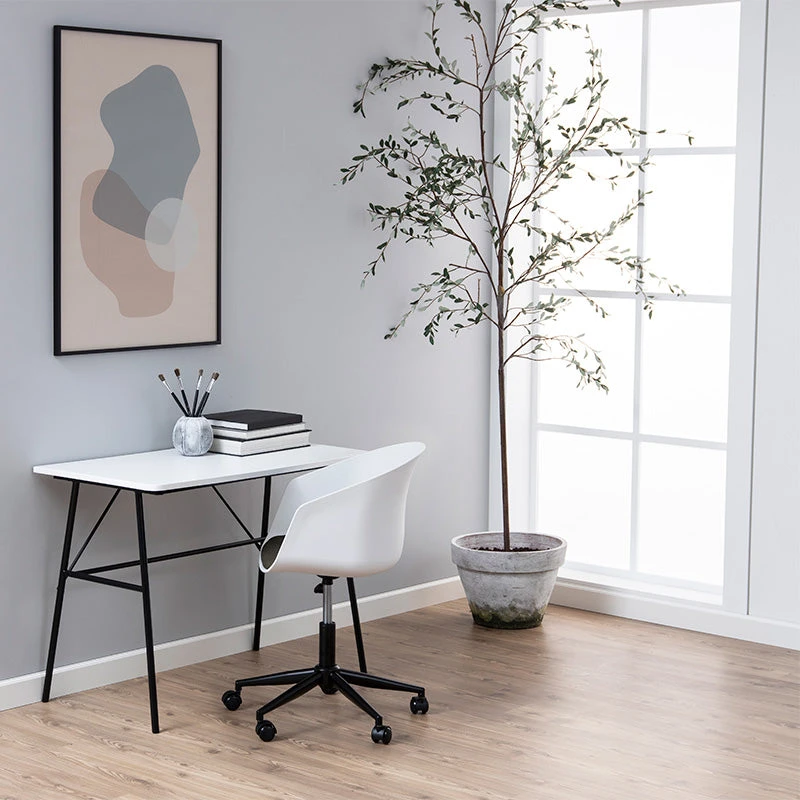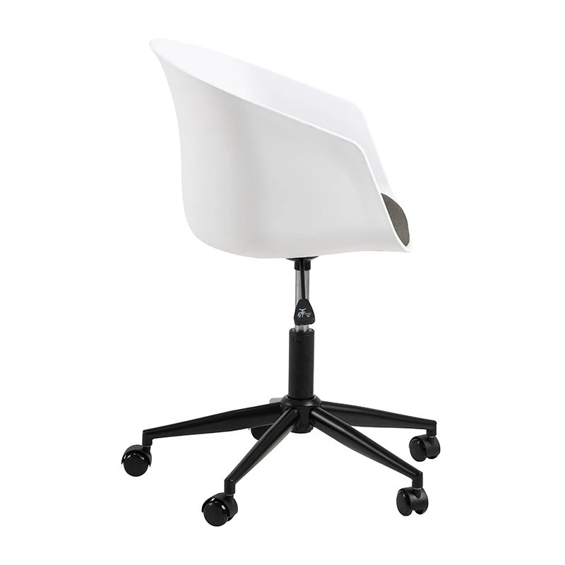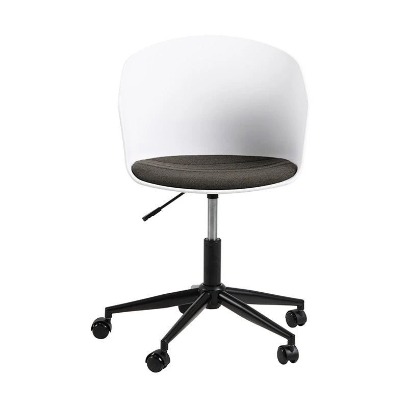 The LIDAN Office Chair has an elegant and sculptural design that is perfect for any office or home. This comfortable upholstered chair is white with a matt black base with a padded seat of grey fabric for added support and comfort. Has Gas lift, Multidirectional wheels with soft brake castors & swivel function It has a padded seat of grey fabric for added support and comfort.