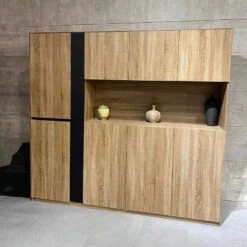 AFTAN Display Unit 240cm – Warm Oak & Black(Aftan Display Unit 2 4m Mahogany Black)