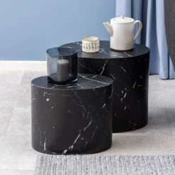 DICE Nest Of 2 Oval Coffee Tables – Black Marble Effect(Dice Nest Of 2 Oval Tables Black)