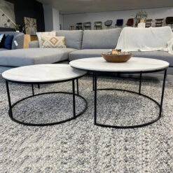 BRANDI Nest Of 2 Tables 75/90cm – White Ceramic Marble(Brandi Nest Of 2 Tables 75 90cm White Black)