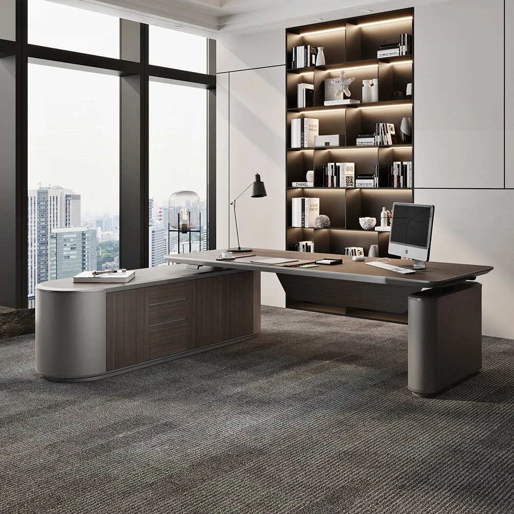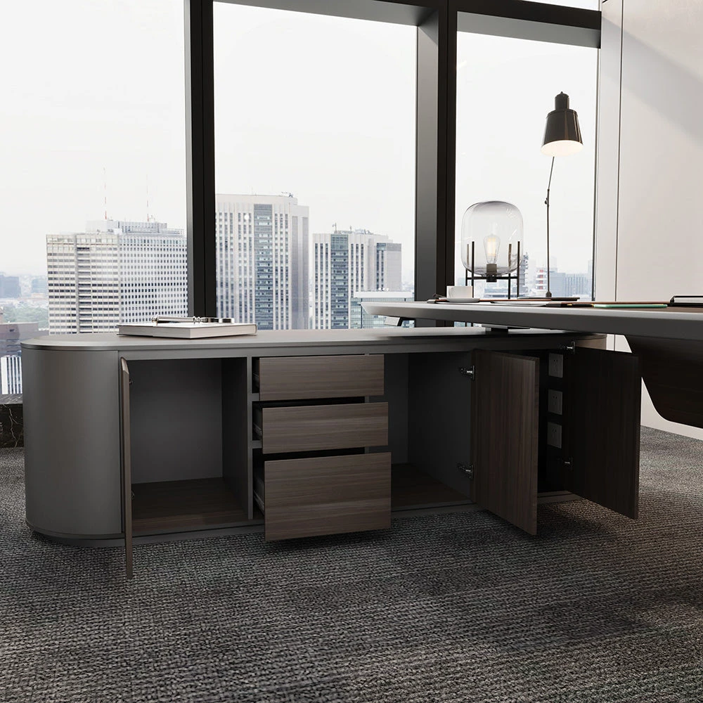 This desk is not only a practical and ergonomic choice but also a statement piece that brings a touch of sophistication to any executive office, showcasing a blend of functionality and contemporary design.