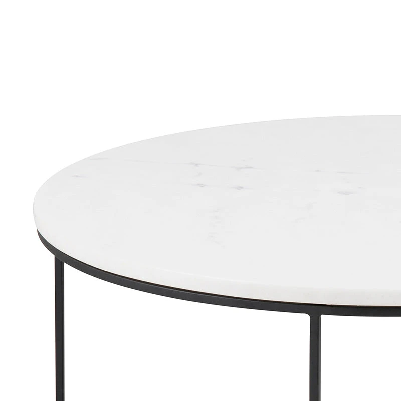 A coffee table is a pivotal piece of furniture in any living room. It serves as a focal point and an anchor for the space. The LUCIO coffee table with a white marble top and black legs would be a chic addition to a contemporary living room.