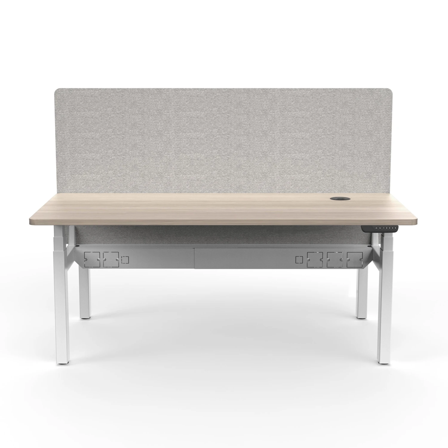 Enhance your work environment with the MARLO workstation with Dual lift. Designed for 2 people, it offers a spacious and environmentally friendly workspace, providing ample room for productivity. The light grey fabric partition adds a touch of privacy while maintaining an open layout that encourages teamwork.