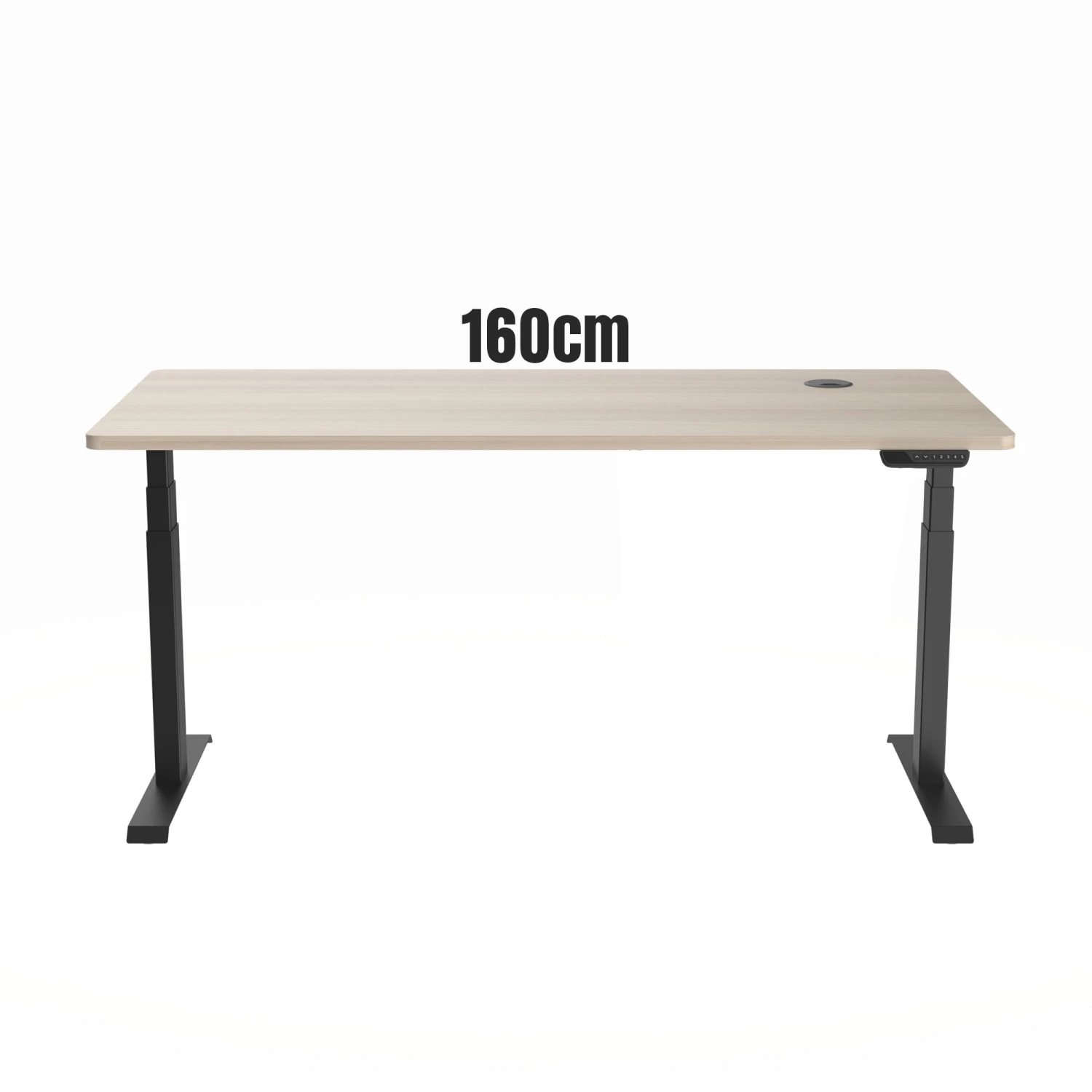 The body of the workstation is constructed with sturdy metal and equipped with an electric lift for easy height adjustment. The table top is made of E1 boards with a melamine finish in oak color, ensuring durability and style.