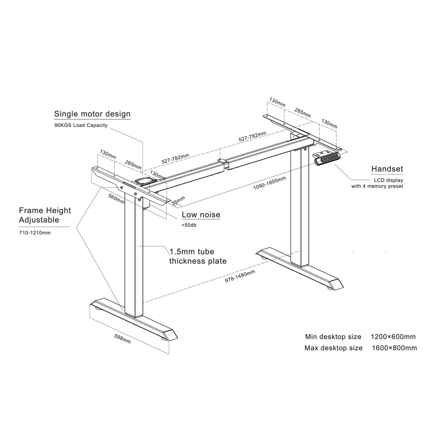 - 160(W) x 70(D) x 63-128(H) – 42kg