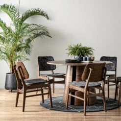 The MARTA Dining table with its modern and minimalistic look is a perfect addition to less spacious dining areas. The carefully selected ceramic top makes it easy to maintain, while the wide trumpet metal base ensures high stability. The table is both stunning and practical, combining aesthetic appeal with ease of maintenance.