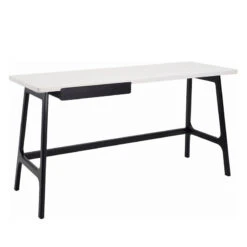 The MOREY Study Desk is a lightweight working desk that is ideal for studying from a laptop or workbook. It has Black legs, a white lacquered top and a small drawer in black ash veneer.
