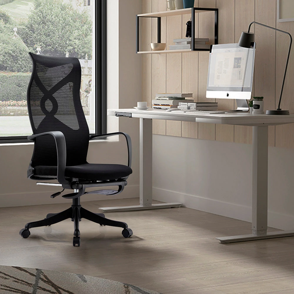 The MURRY High Back Chair stands out with its sleek and modern design, making it an ideal addition to any contemporary workspace. Made of high-quality mesh, it ensures breathability and durability. For added comfort during extended work sessions, the chair is padded with memory foam. The gas lift mechanism allows users to effortlessly adjust the chair’s height to their preference, while the tilt mechanism provides an added layer of customization. Additionally, with its built-in footrest, the chair can easily transition into a recliner, allowing users to relax when needed. This chair is not only stylish but also geared towards providing the utmost comfort and functionality.