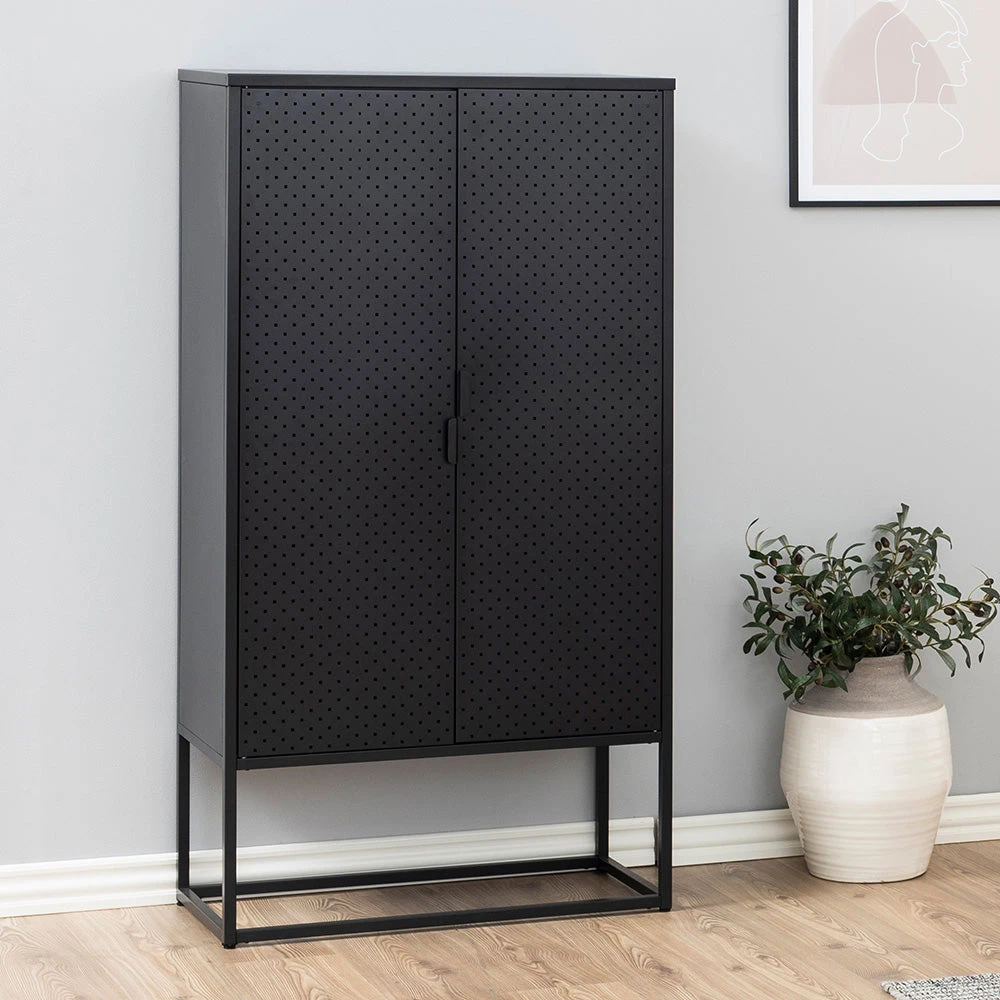 Bring an industrial feel to your home with the NEWTON cabinet. The rough powder coated metal brings a modern feel to the room and the narrow design will make it fit in anywhere. Use the black cabinet as a cool way to upgrade your space and get some great storage space