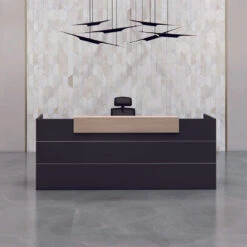BELEN Reception Desk 2.4M – Acacia & Carbon Grey(Belen Reception Desk 2 4m Acacia Carbon Grey)