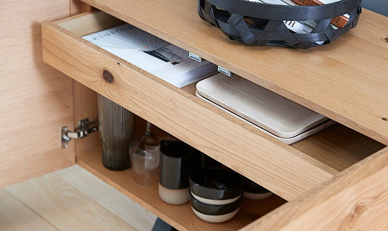 A rigorous and edgy look from the black legs combined with a more traditional design on fronts and tops is enhanced by “wavey” edges giving OLIVETO its own style and take on design.
