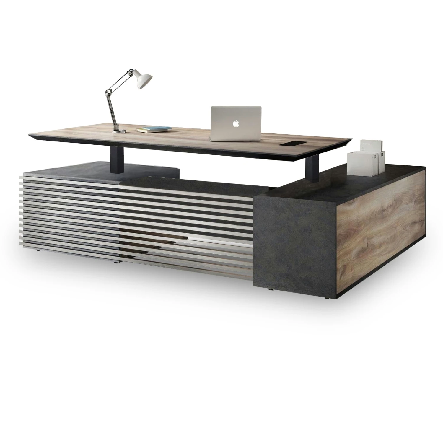 It is a state-of-the-art CEO executive desk with automatic height adjustment. The electric sit stand desk come with elegance, sharpness and leading-edge design and finishes fitted with a 4 level programmable setting digital display panel. Packed with plenty of self-closing drawers and cupboards there will be no shortage of storage.