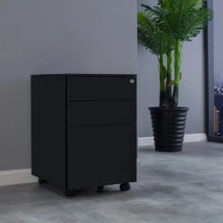 MARLO 3 Drawer Slim Mobile Pedestal Cabinet – Black(Marlo 3 Drawer Slim Mobile Cabinet Black)