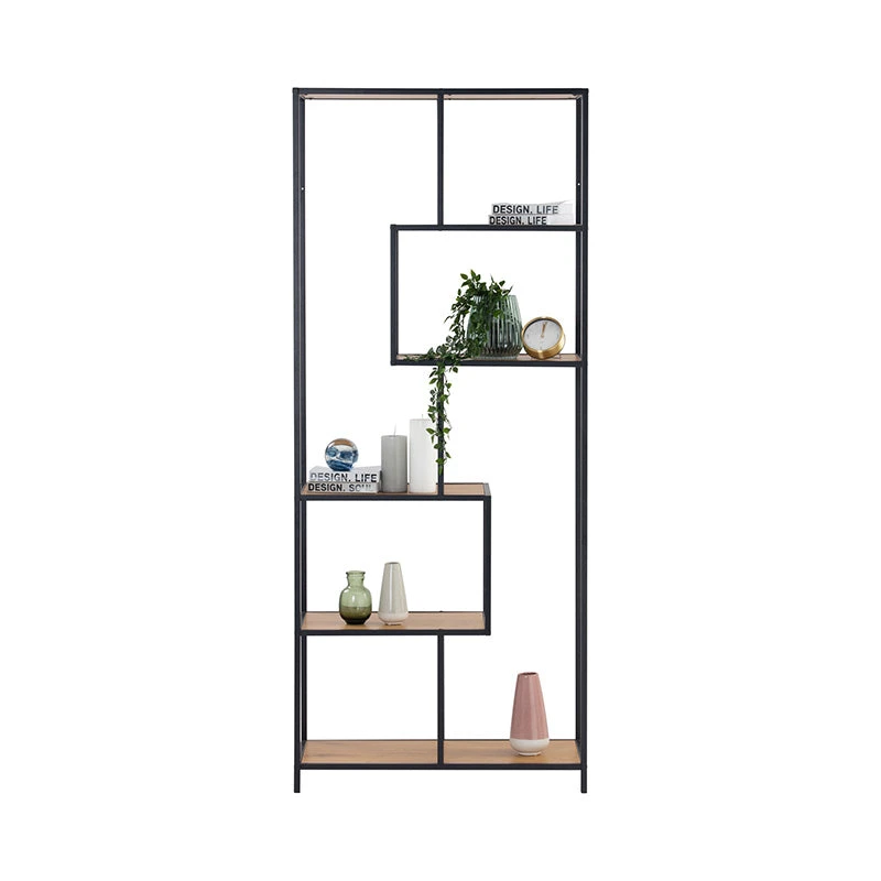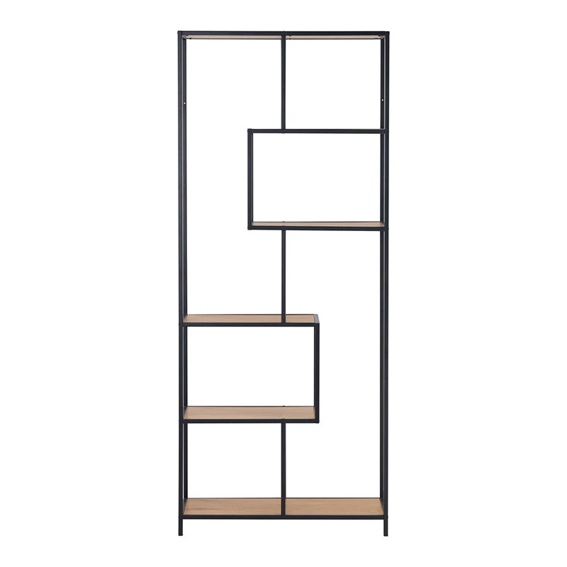 Crafted with an openwork metal frame and wild oak top shelves, the RUTHIN Bookcase features shelves of varied sizes that provide an excellent place to display loved items.