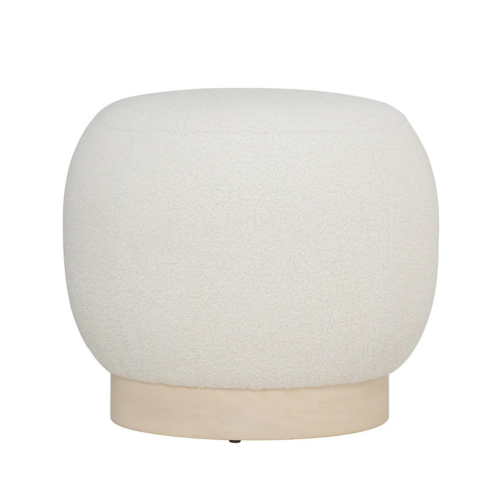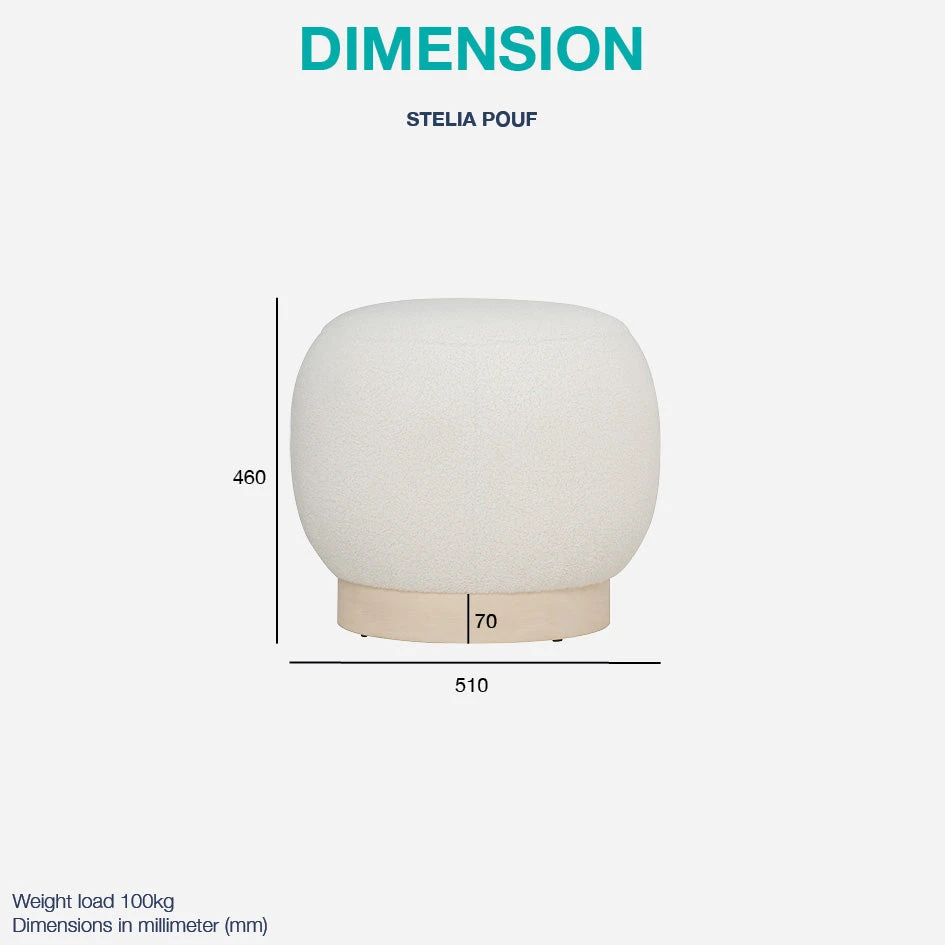 The STELIA Ottoman is a versatile piece of furniture, delicately designed and petite. Upholstered with bucle fabric and featuring high-density foam for extra comfort, it is supported by a bentwood base with leg stoppers to protect floors.