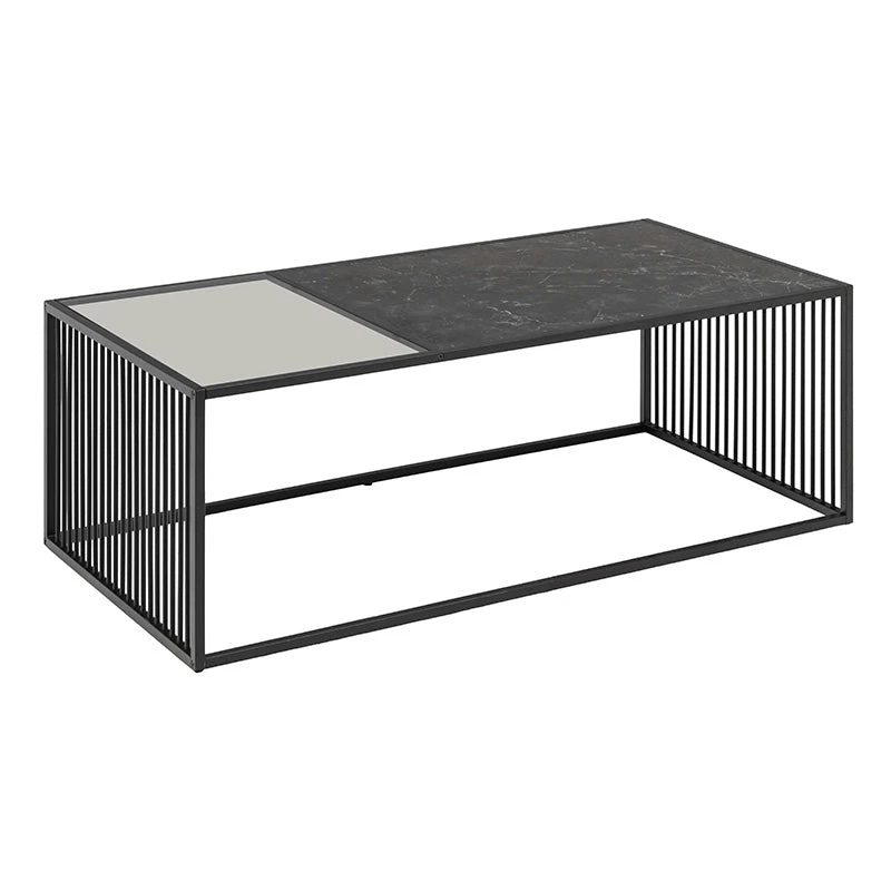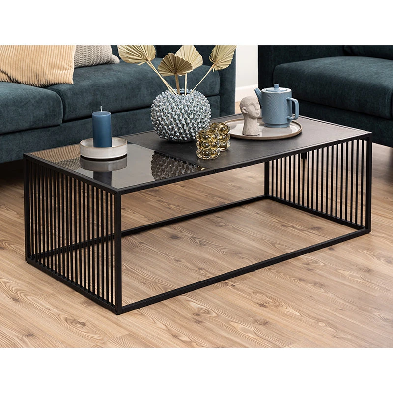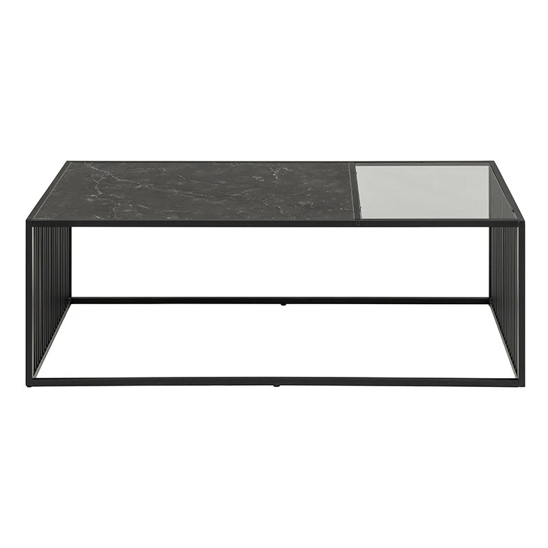 Ready to make a statement? Then prepare for the STRINGTON Rectangular Coffee Table. To achieve that cool vibe, the tabletop is divided with one side of smoked glass and one side of black marble look. The sides complete the look with rounded, vertical metal slats, which also give the design a modern lightness.