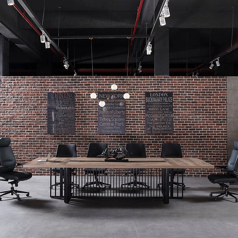 The base, finished with Matt Black stainless steel bars, adds a contemporary touch to the table’s overall design. This boardroom table not only offers a spacious and functional workspace but also contributes to the overall aesthetic of a modern office, making it a focal point that combines style and functionality for important meetings and discussions.