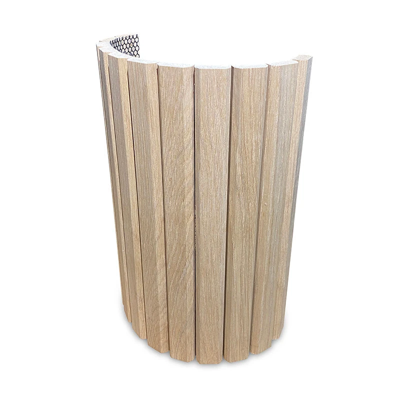 WOODFLEX® introduces its own patented innovative design premium DIY flexible wood slat panels finished with a natural American oak Veneer. The slats are fitted on a flexible backing designed to easily mount panels on around any walls, cabinets or surfaces.